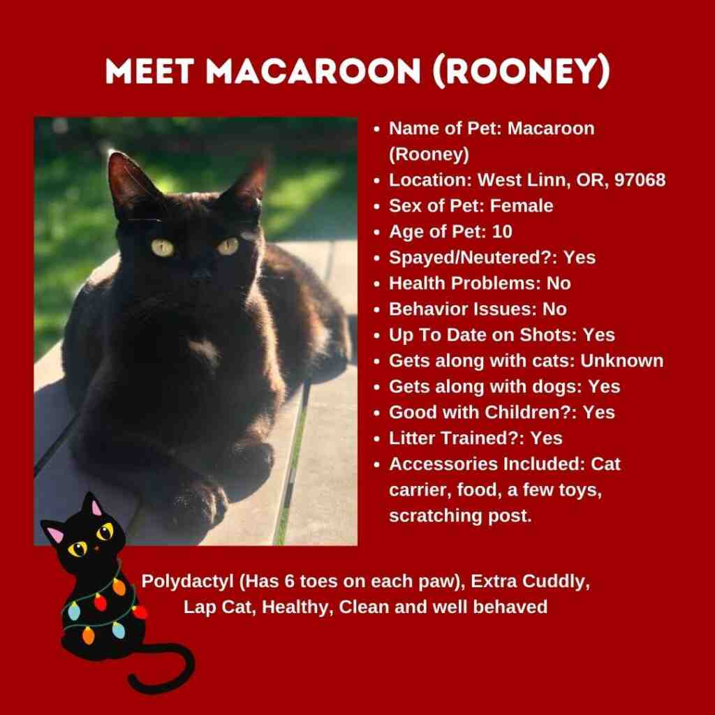 West Linn Oregon Black Polydactyl Cat For Adoption – Meet Macaroon