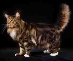 Maine Coon cats are known for their large size and distinctive physical characteristics. They have a muscular, rectangular body with a broad chest and long, bushy tail. Their heads are medium-sized with high cheekbones, and their eyes can be any color, from green to gold to blue.