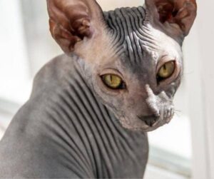 Sphynx cats are known for their distinctive appearance. Their lack of fur exposes their wrinkled skin, which can vary in color and pattern.